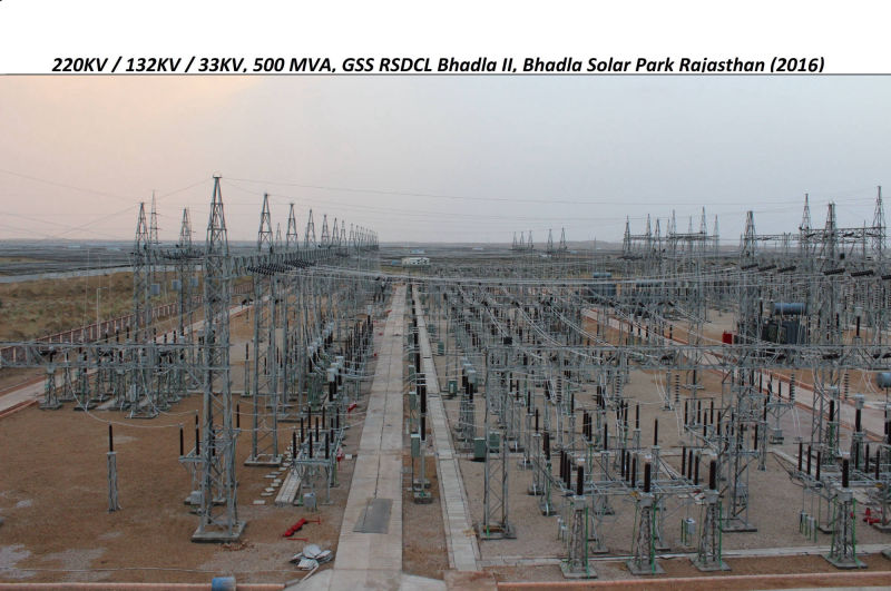 - Construction of 220/132/33 KV 500 MVA Grid Sub-Station, RSDCL, Bhadla Solar Park– Installation, testing & commissioning of –